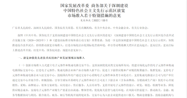 两部委:支持深圳组建市场化运作的电子元器件和集成电路国际交易中心